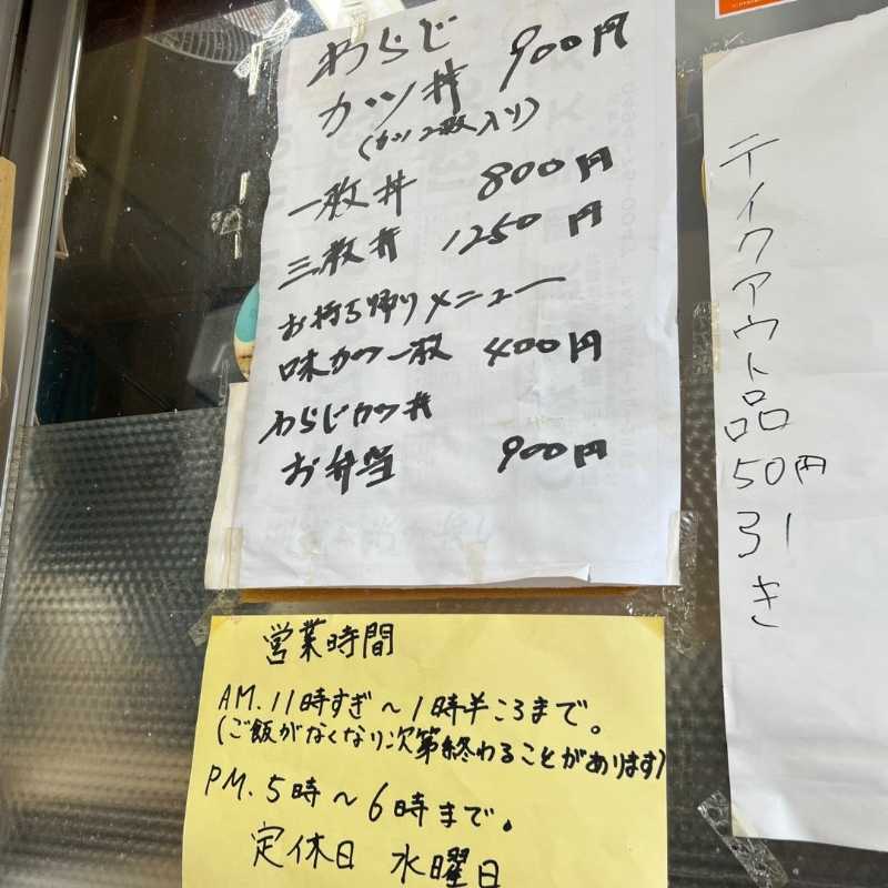 メニューは「わらじカツ丼」のみで、普通はカツ2枚ですが、1枚や3枚のカツ丼もありました。