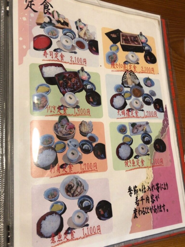お店の詳細についてはあまりわからなかったのですが、寿司や天ぷら、刺身といった会席や定食を提供している和食料理店のようです。