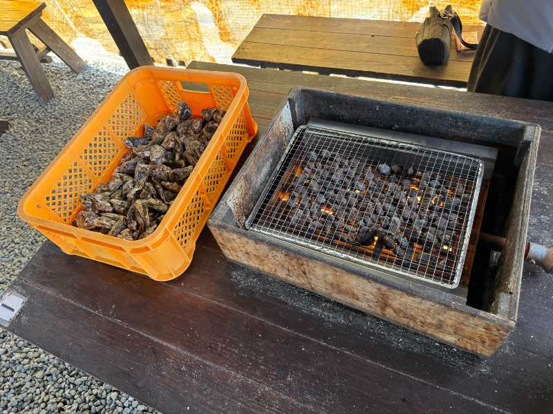 あと、焼いていると結構な頻度で殻や水分が弾け飛んで危ないので、眼鏡やサングラス、ゴーグルなどをかけながら焼くのがおすすめです。