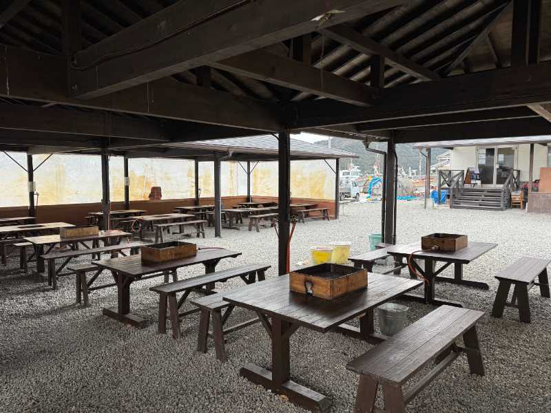 ●牡蠣は大きなオレンジ色のカゴにたっぷり入って提供され、無くなったらおかわりを伝えにカゴを持って受付へ、焼く前の余った分は10分前に回収される。