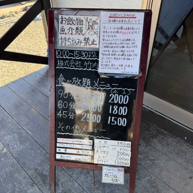 こちらのお店ではバーベキュースタイルの相生産牡蠣食べ放題を行っているので、とても気になり今回初訪問です。