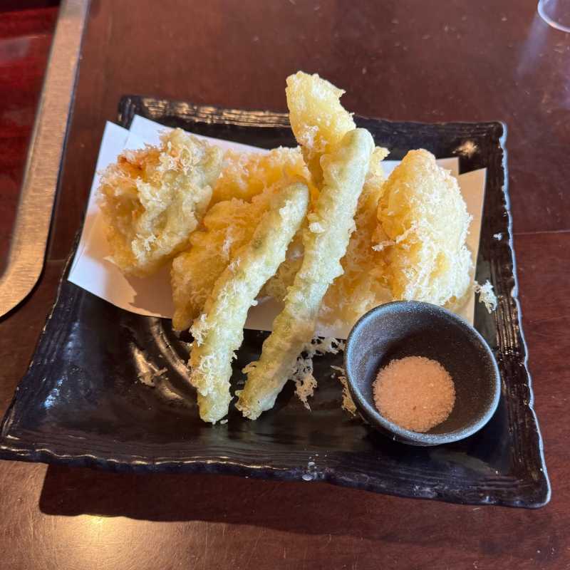 単品としては少し値段が高めですが、大ぶりの讃岐でんぶくの天ぷら2個に、瀬戸内産牡蠣の天ぷらは3個、いんげん?の天ぷらも2個あるので、2人で分けて丁度良いくらいのボリューム。