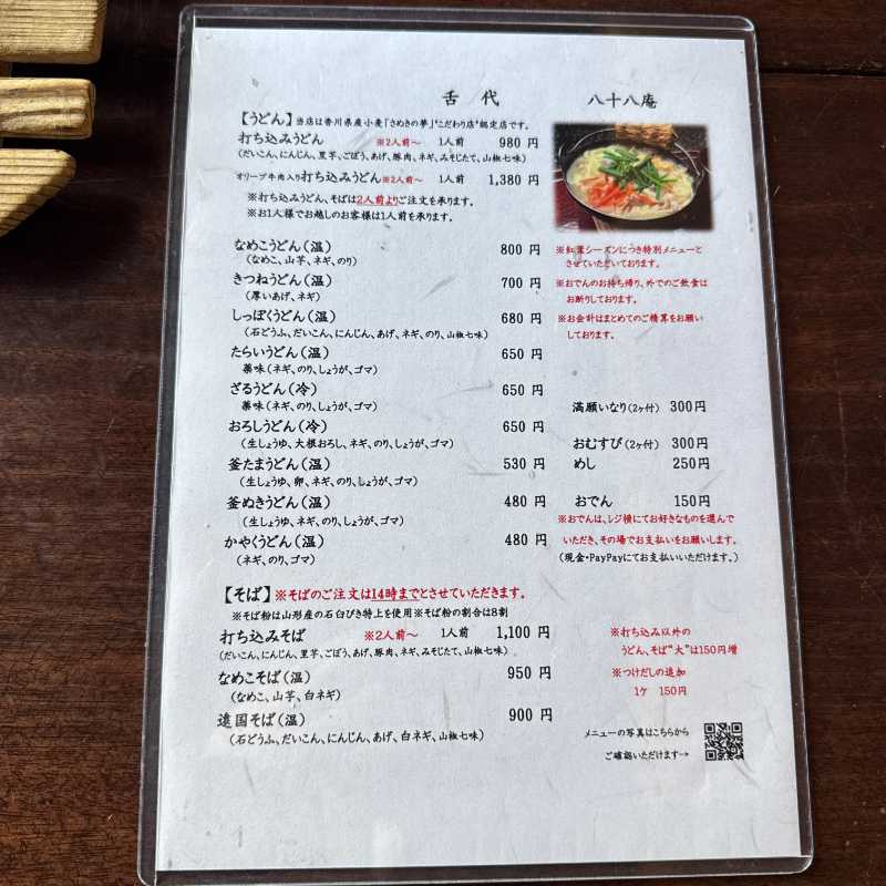 目当ての「打ち込みうどん」は基本2人前からの注文になりますが、1人客の場合は1人前でも注文可能だそうです。