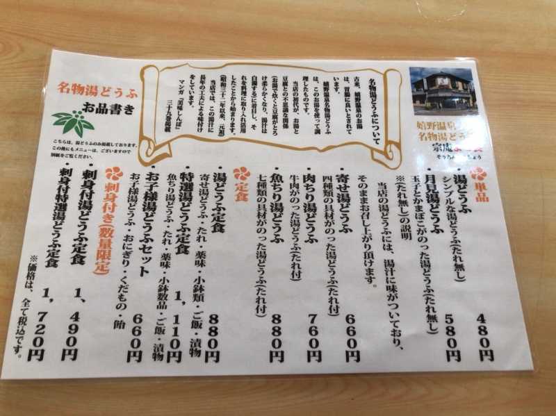 メニューは湯豆腐をメインに、単品や定食の様々なラインナップ。