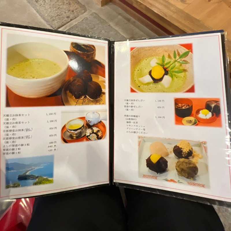 宮津市史によると天橋立の眺めに感嘆しながら智恩寺文殊堂へ参詣するため渡し舟で渡り桟橋(当時は回旋橋付近勘七茶屋前)に到着すると門前の茶店の名物「智恵の餅・才覚田楽・思案酒」が売られている様子が記されており、当時より智恩寺参詣し智恵の餅を食すことが慣習であったことが伺える。