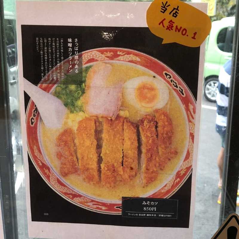高知県高岡郡越知町に本店を構える、ご当地ラーメン「味噌カツラーメン」の有名店『自由軒』。